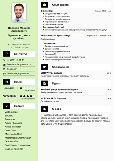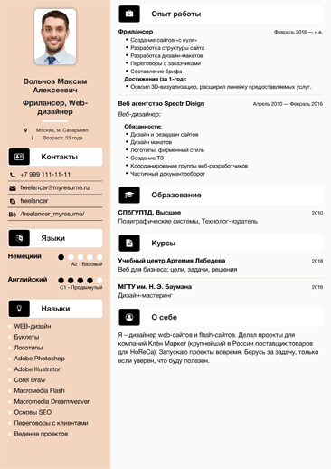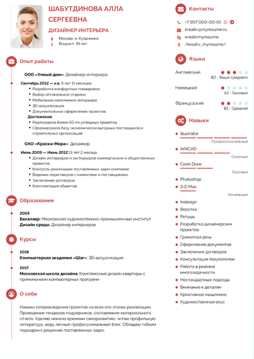 Грамотность написания — это аксиома. Не ленитесь перечитать написанное, желательно на следующий день и вслух. Сайты проверки текстов (text.ru, Glvrd, Advego) будут вам в помощь. Формат файла документа — PDF (лучше скачать готовый шаблон). Разница в версиях других программ искажает внешний вид анкеты. А дизайн резюме на работу аниматора пример того, что действительно важно для работодателя.