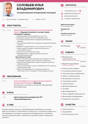 Возраст, хобби, моральный облик не предмет данного раздела. Об этом расскажете на собеседовании. Информация из данного раздела поможет нанимателю составить мнение о вас как о специалисте.